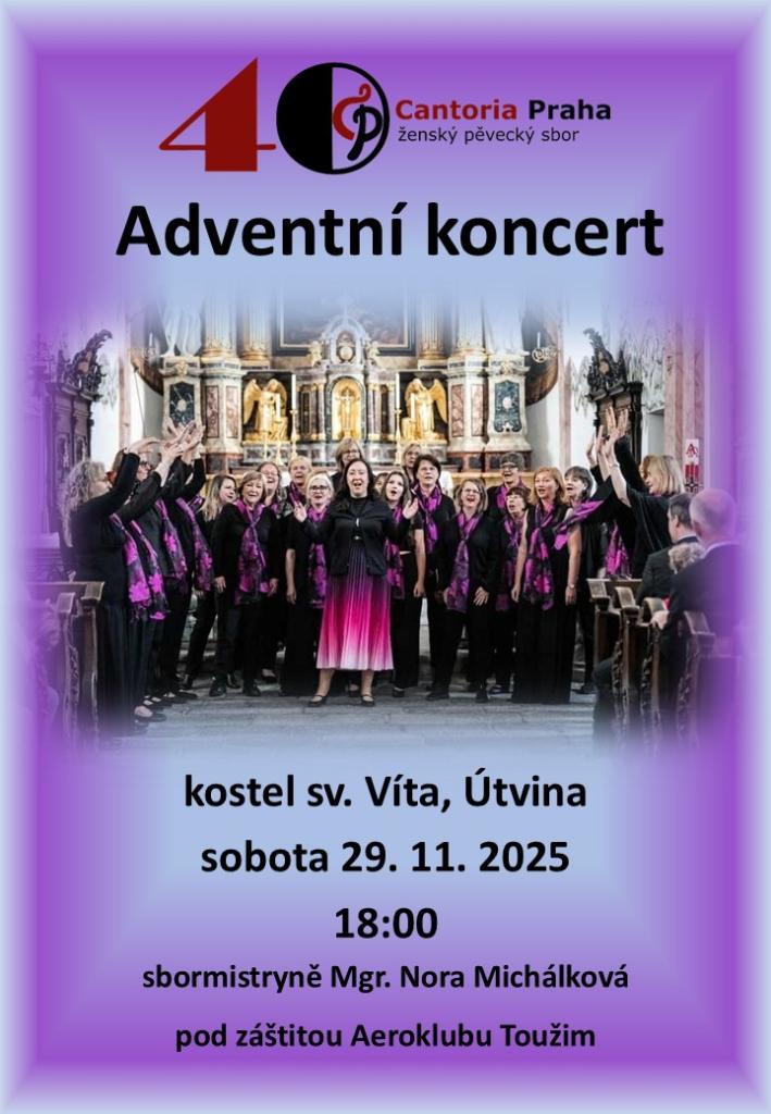 Pod záštitou Aeroklubu Toužim se bude konat Adventní koncert ženského pěveckého sboru Cantoria Praha v kostele sv. Víta v Útvině v sobotu 29.11.2025 od 18:00 hodin.