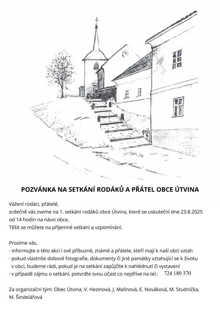 Vážení občané, oznamujeme vám, že v pondělí dne 9. února 2026 bude pokladna obecního úřadu v Útvině uzavřena z důvodu školení. Děkujeme za pochopení.